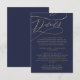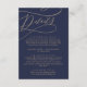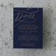 Esta romántica tarjeta de gabinete con detalles de caligrafía marina es perfecta para un simple boda. El moderno diseño clásico presenta vistosos remolinos y florituras con una preciosa y elegante tipografía de Relieve metalizado de oro con chaflán a mano con letras falsas y oro. Nota: Este diseño no tiene Relieve metalizado oro real. Es un gráfico de alta calidad hecho para parecer un Relieve metalizado dorado.