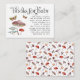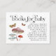 Tarjeta rústica para la reserva de la ducha para bebés con ilustracion acuático de champiñones y polillas. La tarjeta pide a los clientes que traigan un libro infantil nuevo o usado en lugar de una tarjeta.
