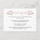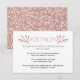 Esta tarjeta de inserción de boda de moda destaca hermosas ramas con hojas hechas de brillo de oro rosa falso y su texto. La parte posterior está cubierta con un patrón hecho de hojas blancas sobre fondo de brillo de oro rosa.