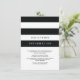 Diseño boda moderno a rayas blancas y negras de Shelby Allison. Haga clic en el siguiente enlace para ver toda la colección Black Stripes (bandas negras) que incluye invitaciones coincidentes, tarjetas rsvp, sellos postales y más.