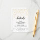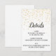 Esta elegante tarjeta de inserción de detalles Gold Confetti es perfecta para un elegante fiesta jubilatorio. El diseño se caracteriza por un confetti de oro falso con una simple caligrafía gris oscuro sobre un fondo blanco.