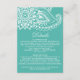 Esta verde azulada tarjeta de inserción de bodas paisley indio es perfecta para un boda moderno. El diseño del mehndi incluye una hermosa henna mandala floral y motivos paisley sobre un fondo turquesa. Coincidir este diseño con las piezas coordinadas en morado, turquesa, rosa y naranja en la Colección de Bodas Paisley Indio Colorido: https://www.zazzle.com/collections/119662428781277925