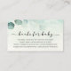 Una tarjeta de inserción para la ducha para bebés solicitada por un libro. Con una rama de eucalipto y un poema: "UNA PEQUEÑA PEQUEÑA PETICIÓN, ESPERAMOS QUE NO SEA DEMASIADO DIFÍCIL POR FAVOR TRAER UN LIBRO EN LUGAR DE UNA TARJETA QUE ELLOS PRESIONARÁN EL LIBRO, BIEN QUERIDOS O NUEVOS POR FAVOR, ¡RÓTULO EL INTERIOR CON UN MENSAJE!"