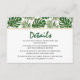 Recepción Tarjeta de inserción de hojas tropicales verde y b