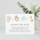 Una tarjeta de inserción para la ducha para bebés solicitada por un libro. Con juguetes de bebé de color de agua vintage y animales rellenos con poema dulce: "UNA PEQUEÑA PEQUEÑA PETICIÓN, ESPERAMOS QUE NO SEA DEMASIADO DIFÍCIL POR FAVOR TRAER UN LIBRO EN LUGAR DE UNA TARJETA QUE ELLOS CRIQUEN EL LIBRO, BIEN AMADOS O NUEVOS POR FAVOR, ¡RÓTULO EL INTERIOR CON UN MENSAJE!"