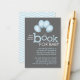 Un poema con encanto pide a los clientes que traigan un libro para el futuro bebé para empezar a dejar a la nueva madre con una biblioteca de libros para niños queridos. Sólo inserte esta tarjeta dulce dentro del sobre de la ducha para bebés. Los adorables globos azules en azul en un campo de gris carbón vegetal se combinan maravillosamente con tantos diseños de duchas para niños pequeños. Coordenadas de patrones de chevron azules y blancos en la parte posterior.