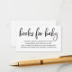 Una tarjeta de inserción para la ducha para bebés solicitada por un libro. Con una caligrafía de Relieve metalizado negro que coincida con nuestra "oh colección de bebés" y un poema: "UNA PEQUEÑA SOLICITUD, ESPERAMOS QUE NO SEA DEMASIADO DIFÍCIL POR FAVOR TRAER UN LIBRO EN LUGAR DE UNA TARJETA QUE ELLOS ENCANTARÁN EL LIBRO, BIEN AMADOS O MARCA NUEVA, POR FAVOR RÓTULO EL INTERIOR CON UN MENSAJE."