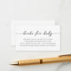 Una tarjeta de inserción para la ducha para bebés solicitada por un libro. Con caligrafía negra y poema: "UNA PEQUEÑA PEQUEÑA PETICIÓN, ESPERAMOS QUE NO SEA DEMASIADO DIFÍCIL POR FAVOR TRAER UN LIBRO EN LUGAR DE UNA TARJETA QUE ELLOS PRESIONARÁN EL LIBRO, BIEN QUERIDOS O NUEVOS POR FAVOR RÓTULO EL INTERIOR CON UN MENSAJE DE USTED".