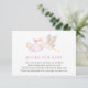 Una tarjeta de inserción para la ducha para bebés solicitada por un libro. Con una cigüeña acuarela que lleva un bebé envuelto en una manta rosa con poema: "UNA PEQUEÑA SOLICITUD, ESPERAMOS QUE NO SEA DEMASIADO DIFÍCIL POR FAVOR TRAER UN LIBRO EN LUGAR DE UNA TARJETA QUE ELLOS ENCANTARÁN EL LIBRO, AMADOS BIEN O MARCA NUEVA, POR FAVOR RÓTULO EL INTERIOR."