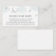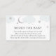 Una tarjeta de inserción para la ducha para bebés solicitada por un libro. Con lunas y estrellas y poema: "UNA PEQUEÑA PEQUEÑA PETICIÓN, ESPERAMOS QUE NO SEA DEMASIADO DURO, POR FAVOR, TRAIGAN UN LIBRO EN LUGAR DE UNA TARJETA QUE ELLOS PRESIONARÁN EL LIBRO, BIEN AMADOS O NUEVOS POR FAVOR, ¡RÓTULO EL INTERIOR CON UN MENSAJE!"