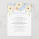 Flor de primavera dulce ramo con rosas rosas rosas rosas, hortensias azules, flores moradas y amarillas sobre un fondo azul acuarela. Tipografía de escritura moderna y elegante con delicados elementos de remolinos. Los tonos pastel del amarillo, azul y rosa son los colores principales de esta suite boda. Personalice el texto, agregue información del boda y haga suya esta invitación.