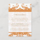 Recepción Tarjeta de inserción de matrimonio naranja y marfi