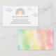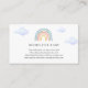 Una tarjeta de inserción para la ducha para bebés solicitada por un libro. Con un arcoiris acuático y un poema: "UNA PEQUEÑA PEQUEÑA PETICIÓN, ESPERAMOS QUE NO SEA DIFÍCIL, POR FAVOR TRAE UN LIBRO EN LUGAR DE UNA TARJETA QUE ELLOS PRESIONARÁN EL LIBRO, BIEN AMADOS O NUEVOS POR FAVOR, ¡RÓTULO EL INTERIOR CON UN MENSAJE DE USTED!"