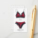 Tarjeta de inserción de lencería con corpiño romántico de acuarela y bragas en un rojo y negro sexy. Personalizar con las mediciones de la ropa interior de la novia. Es muy agradable acercarse a invitaciones de soltera para pedir a los chicas que traigan a la novia algo especial para la luna de miel.