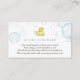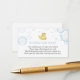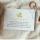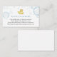 Una tarjeta de inserción para la ducha para bebés solicitada por un libro. Con pato de goma y burbujas con poema: "UNA PEQUEÑA PEQUEÑA PETICIÓN, ESPERAMOS QUE NO SEA DIFÍCIL POR FAVOR LLEVAR UN LIBRO EN LUGAR DE UNA TARJETA QUE ELLOS PRESIONARÁN EL LIBRO, BIEN QUERIDOS O NUEVOS POR FAVOR, ¡RÓTULO EL INTERIOR CON UN MENSAJE!"