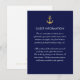 Personalizar este elegante Boda de Ancla Náutica Azul Oscuro Sencillo diseño de la tarjeta para información adicional para los huéspedes bodas. Personalizable completo y ajuste como plantilla para su fácil personalización. Invitación a matrimonio coincidente, Tarjeta RSVP, Tarjetas de programa, Invitación a ducha de novia, Invitación a cena de ensayo y tarjetas de etiquetas de agradecimiento y Pegatinas de favores se pueden encontrar en los enlaces siguientes. Juntos crean una hermosa colección de Bodas. También disponible en blanco.