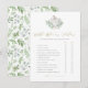 ¿Es un niño o un chica? Tarjeta de juego de Cuentos de Viejas divertidas y fáciles. Ilustraciones acuáticos de calabaza blanca, vegetación y flores blancas con un patrón de vegetación a juego para el dorso de la tarjeta. Esta tarjeta de predicción de género de calabaza es perfecta para duchas de bebé con efecto neutro en género y caídas.