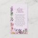 Receta de Lavanda Tarjeta de Alojamiento para Ducha de Novia. Con un guión elegante de caligrafía y una exquisita pintura acuarela pintada a mano en lavanda suave, rosa rubor, burdeos profundos y violeta vibrante, adornados con delicados flores silvestres, rosas y un elegante entorno verde. Perfecto para las duchas nupciales de primavera, verano y otoño, cada artículo de esta colección susurra de amor, encanto y romance eterno que prepara el escenario para su celebración inolvidable. Disfrute de la belleza de la naturaleza y del encanto de la elegancia vintage en su día especial con nuestra cautivadora colección.