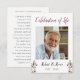 Esta elegante tarjeta de oración de fotos con flores de Borgoña es una hermosa manera de recordar a un ser querido durante la celebración del servicio de vida. Esto hace un lindo conservador que puedes mostrar en tu casa después.