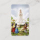 Tarjeta de oración de nuestra Señora de Fátima con la Santísima Virgen María apareciendo a los niños en Fátima. La oración en la espalda dice "Reza al Rosario todos los días para obtener paz para el mundo". Nuestra Señora de Fátima el 13 de mayo de 1917 y "No hay problema, te digo, no importa lo difícil que sea, que no podemos resolver con la oración del Santo Rosario". - Hermana Lucy de Fátima.
