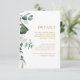 Bella y moda floral blanca con verdor boda tarjeta de información de huéspedes con tipografía de color bonito dorado y una suave espalda verde.