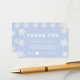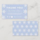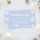 Personalizar esta tarjeta de comercialización de copos de nieve de temporada. Esto es perfecto para un negocio de comercio electrónico como una boutique, una tienda Etsy o cualquier otra pequeña empresa. Incluye la frase "Gracias" y un texto de personalizable para explicar más detalles. Este producto expresa la apreciación del cliente y anima a los compradores a seguir su negocio en las redes sociales con la información proporcionada junto a los iconos de contacto de Facebook, Instagram y YouTube.