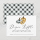Boletos de rifa de pañales para la ducha de bebé con calabazas de manteca acuática en la parte superior de colores negro, gris, blanco, naranja y crema. La frase "Diaper Raffle" aparece en un guión moderno de caligrafía. Personalice las instrucciones de juego para la ducha de bebé de su personalizado. El diseño se coordina con nuestra colección Rustic Plaid Pumpkin.