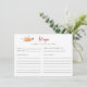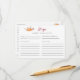 Tarjeta de recetaria para la calabaza de otoño de Bridal Shower.