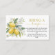 Tarjeta de receta de ducha con flores de limón Blossom Invite a los huéspedes a compartir su plato favorito con esta encantadora tarjeta Lemon Blossom Bring-a-Recipe. Diseñada con limones acuáticos brillantes y vegetación, esta tarjeta de recetas es la adición perfecta a una ducha nupcial con tema cítrico o toscano. Una manera dulce y personal de ayudar a la novia a empezar su propia receta llena de amor y tradición. Se coordina con gusto con una decoración y una invitación a la ducha a la limón.