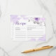 Tarjeta de receta de ducha de novia floral púrpura pastel