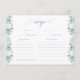 Recepción Tarjeta de Receta de Ducha Nupcial Floral Azul Cla