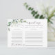 Recepción Tarjeta de receta Eucalyptus Bridal Shower de 3.5"