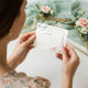 Añada un toque más sincero e interactivo a su ducha nupcial con nuestra tarjeta de recetas de excelente diseño. Esta tarjeta invita a los huéspedes a compartir sus recetas favoritas, creando un significativo keepsake que la futura novia valorará. El diseño presenta moda pintada a mano, elegante y moderno vestido de boda blanco y rosa pálido con un jardín botánico de rosas y flores florecientes. El vestido de flores está colgado sobre una colgante de burro dorado estilo vintage. Los detalles de los encajes florales suaves y los estampados brillantes en el vestido boda crean un ambiente hermoso, sofisticado y lujoso. Incluya esta encantadora receta con sus invitaciones a la ducha de novia para atraer a los huéspedes de una manera divertida y personal. Es una encantadora adición a tu celebración que combina belleza, sentimiento y creatividad. Obra y diseño de © Moodthology Papery.