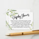 Si estás hospedando una ducha sin regalo para una futura mamita, esta elegante tarjeta podría ser la elección para ti. Utilizando un tipo de letra de guión moderno y manuscrito, primero añadí un gráfico de encabezado que dice "Display Shower" en la parte delantera, y "To" y "From" en el lado de la etiqueta de regalo. Los bordes han sido adornados con bonitos, brotes de acuarela verde de hojas de hierbas. Se ha creado un campo de plantilla para ofrecer instrucciones a los clientes que no cumplan con su regalo; por favor, no dude en cambiar la redacción si fuera necesario. El tipo de letra sans-serif utilizado para las instrucciones se puede modificar según se considere oportuno. // Diseñado por Melody Watson para la Muserie de Papel.