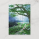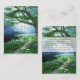 Sendero boscoso a lo largo de un arroyo con flores silvestres de margaritas blancas, amapolas rojas y nomeolvides azules, un hermoso roble antiguo y un columpio antiguo colgando de él... una escena romántica y serena para una pareja que comienza su nueva vida en el camino hacia la eternidad.