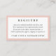 El tipo clásico y un marco elegante de color dan a esta tarjeta de información de registro la versatilidad para integrarse con todo tipo de invitaciones, solo ajusta el color de fondo para que coincida con los colores de tu evento. No te olvides de personalizar el texto y dirigir a tus invitados a tus registros de boda.