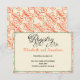 Esta encantadora tarjeta de detalles del registro de boda rústica de Naranja y Verde azulado le ofrece una encantadora incorporación a su suite boda. El roble deja coordenadas de diseño con nuestra suite nupcial de campo Naranja y Verde azulada, disponible en Felix Matrimonium, sólo en Zazzle.