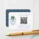 Esta simple y elegante tarjeta de inserción de código QR (para registro o RSVP o cualquier otra cosa relacionada con el evento) presenta mi ilustración original de jarrón de jengibre azul y blanco con lazo verde. En el reverso hay un estampado de cuadros escoceses azul y verde festivo.