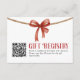 Haz que los regalos navideños sean simples y elegantes con esta tarjeta de código QR de registro de regalos, un toque perfecto para tus invitaciones festivas o baby shower, despedida de soltera, cumpleaños o evento navideño. El diseño clásico aporta una sensación cálida y alegre, ayudando a tus invitados a acceder fácilmente a tu lista de regalos en línea con un simple escaneo.