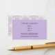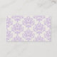tarjeta de gabinete del registro de ducha de novia, hecha en lavanda sólida, en la parte delantera, y adorable patrón de damasco de lavanda y marfil, en la parte posterior. El texto negro, en la parte delantera de la tarjeta, está listo para personalizar con la información del registro de la novia. Excelente incorporación a nuestras elegantes invitaciones a la ducha de novia con damasquinados de lavanda.