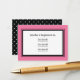 Tarjeta de registro de ducha de novia Retro. Añada a sus invitaciones para que los huéspedes sepan dónde está registrada la futura novia. La parte delantera de esta tarjeta de registro de ducha de novia retro incluye un guarnecido rosa y negro con un marcador de posición para el nombre de la novia y la información del registro. Todo el texto es editable. La parte trasera de la Tarjeta de Registro es un divertido, audaz, negro y blanco patrón de polka-punto. Si necesita ayuda para personalizar el texto o desea ver este diseño en otro color, por favor, no dude en ponerse en contacto con nosotros. Derechos reservados © Bolesy Bridal Showers
