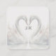 Los cisnes adornan la parte delantera y trasera de estas tarjetas de respuesta de boda, ofreciendo una estética romántica. Con tonos suaves de blanco y colores de plata oscura. Solo agrega los detalles de tu evento de boda. También puedes usar el código QR para tu respuesta, sitio web, registro de boda y más. Ideal para ocasiones especiales. Utiliza la plantilla para crear tu propia tarjeta de respuesta con código QR para boda de cisnes románticos.