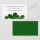 Tarjetas de respuesta en línea de trébol verde para una boda en marzo. Los tréboles decoran pequeñas tarjetas blancas con dos espacios para texto personalizado. Incluya con las invitaciones de boda para dirigir a los invitados a responder en línea en un sitio web.