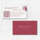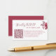 Tarjeta de respuesta de boda elegante y moderna con un diseño floral burgundy romántico y un práctico código QR para respuestas en línea fáciles. Perfecta para parejas que buscan una forma elegante y práctica de recopilar respuestas de invitados, compartir detalles de la boda y simplificar la planificación. Esta tarjeta de respuesta a doble cara combina perfectamente con suites de invitaciones de boda clásicas, de otoño, invierno y formales. Totalmente personalizable para que coincida con los colores y detalles de tu boda.