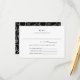 Una carta de respuesta de invitación de boda simplificada con texto en blanco y negro limpio más un patrón de respaldo de coordinación de anillos de boda plateado. Personalice todo el texto de esta tarjeta de respuesta de invitación para una tarjeta del recinto del personalizado con información sobre la elección de comida para sus invitados.