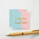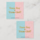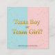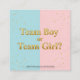 Añade el toque final perfecto a tus invitaciones de revelación de género con esta tarjeta de recinto cuadrado de moda. 💙 💖 Diseñada en un estilo diverso y dividido, con mitades rosa y azul pastel, un brillante texto dorado que dice "¿Team Boy o Team Chica?", y una salpicadura de confeti, esta carta es a la vez elegante y divertida. La parte trasera tiene una suave mezcla de color rosa y azul con un pequeño corazón dorado — dulce y mínimo para un aspecto pulido. Con un tamaño de 2,5" x 2,5", es ideal para incluir detalles adicionales como información de RSVP, notas del registro, código de vestimenta, o incluso para usar como tarjetas de votación por equipo durante tu revelación de sexo fiesta.