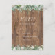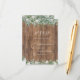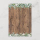 Esta tarjeta de RSVP coincidente presenta vegetación de eucalipto y un diseño de madera rústica, diseñada para combinar perfectamente con el conjunto de invitaciones. Plantilla totalmente personalizable con fecha límite de RSVP, opciones de comida y detalles del evento.