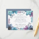 Tarjeta de sobre con flores oscuras en acuarela en azul, turquesa y púrpura.