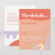 Una tarjeta de sobre colorida y contemporánea en una paleta de colores frescos, con espacio en ambos lados para todos tus detalles esenciales.