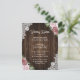 Proporcione a sus invitados con detalles importantes con esta tarjeta de sobre de boda floral rosa desvanecido rústico con flores rosas y desvanecidas en un fondo de madera de granero adornado con encaje floral blanco.